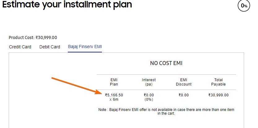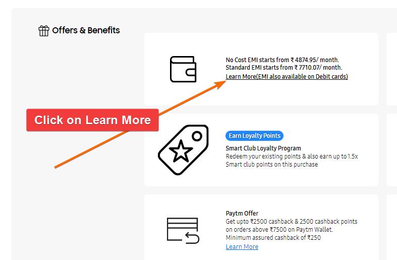 Check Samsung on No Cost EMI article