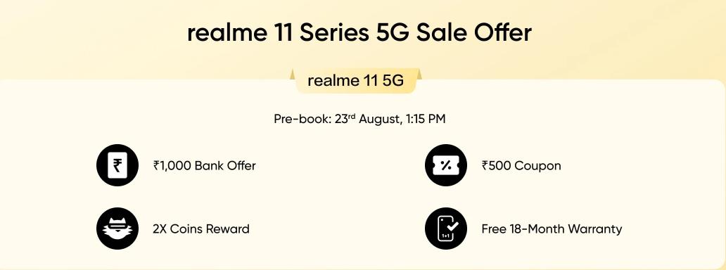 Maximum Selling price of realme 11 5G is ₹18,999 for 8GB/128GB and ₹19,999 for 8GB/256GB